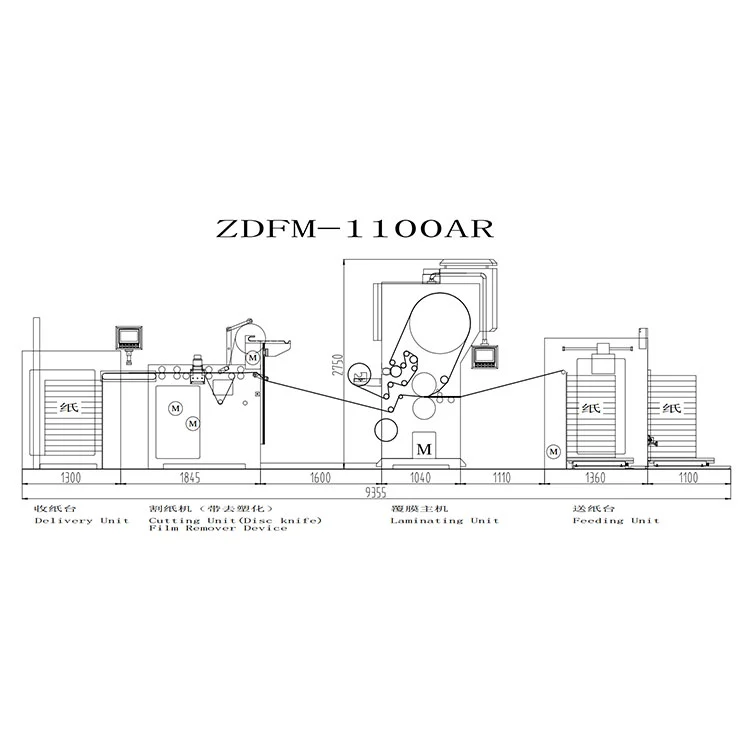 Pianificazione dello spazio: la lunghezza totale della macchina laminatrice per la rimozione automatica della pellicola è di circa 9,4 metri e sarà necessario riservare ulteriore spazio di stoccaggio e sostituzione per i rulli di riciclaggio della pellicola distaccante. Si consiglia di riservare almeno 2 metri di canale operativo sul lato avvolgimento.